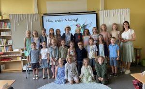 Die Klasse 1a mit ihrer Klassenlehrerin Frau Bräuer.