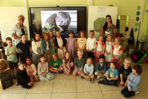 Die Klasse 1b mit ihrer Lehrerin Frau Kruber und der Schulbegleitung Frau