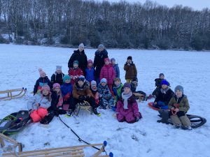 Die Klasse 2a beim Schlittenfahren im Januar 2024
