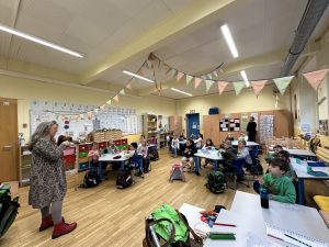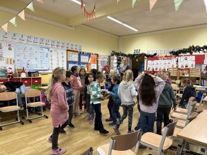 Klasse 2b mit der Klassenlehrerin Christiane Bilstein und den Schulbegleitungen Frau Benz und Frau Hangebrauk